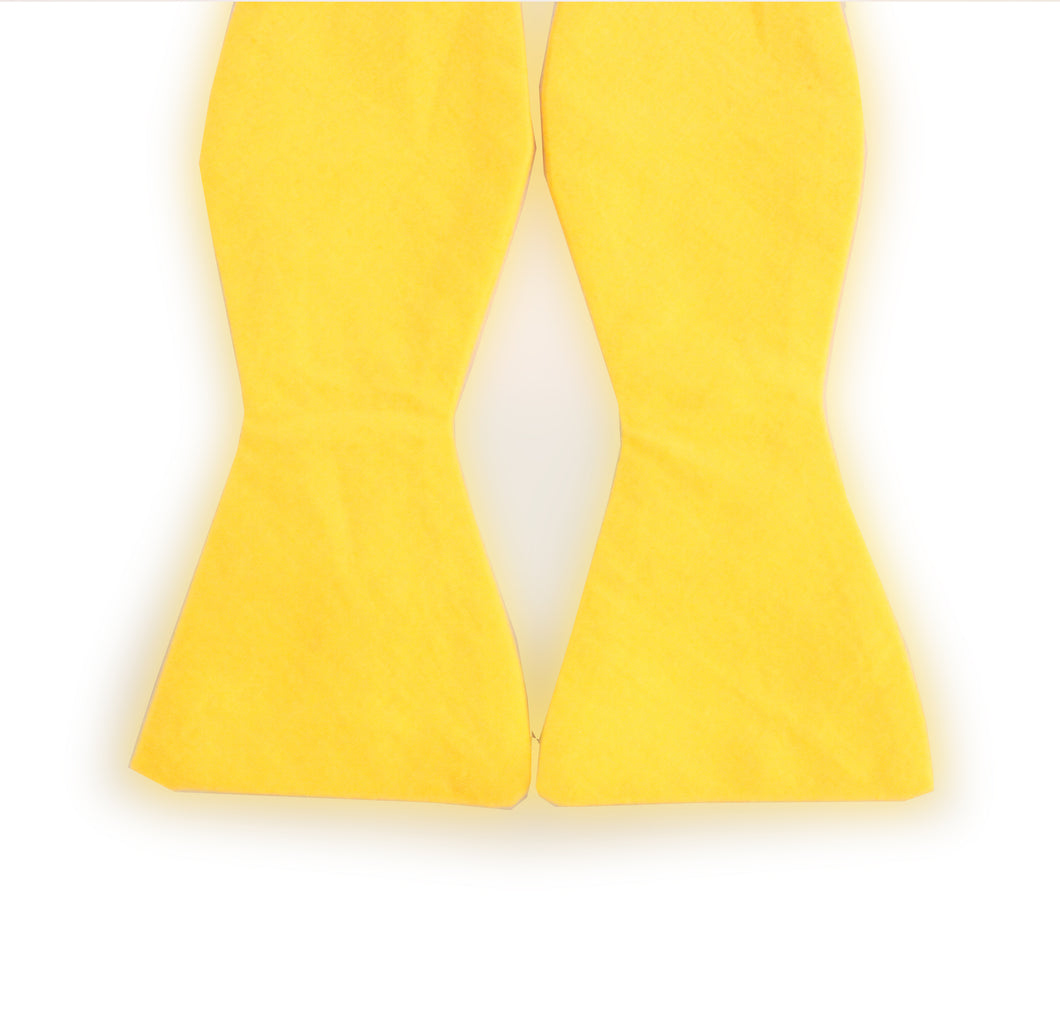 Refined Vanguards' ties are handmade in the USA. Each item will be unique due to its handcrafted nature. Every detail has been carefully executed resulting in high quality with a great deal of style. The Goldie is a yellow bow tie with a butterfly design made of cotton fabric. This tie is exquisitely finished with a sizing tape and clasp allowing easy wear.