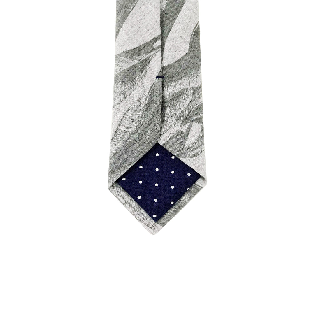 Refined Vanguards' ties are handmade in the USA. Each item will be unique due to its handcrafted nature. Every detail has been carefully executed resulting in high quality with a great deal of style. The Grey Garden is a Grey necktie with a dark grey floral print made from 100% cotton fabric. This tie is exquisitely finished with a navy polka dot pattern tipping.