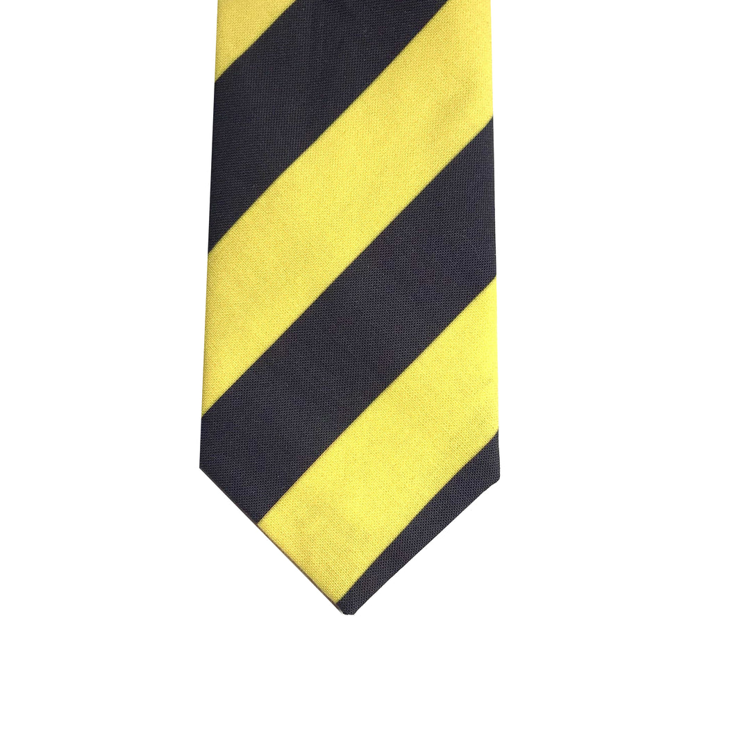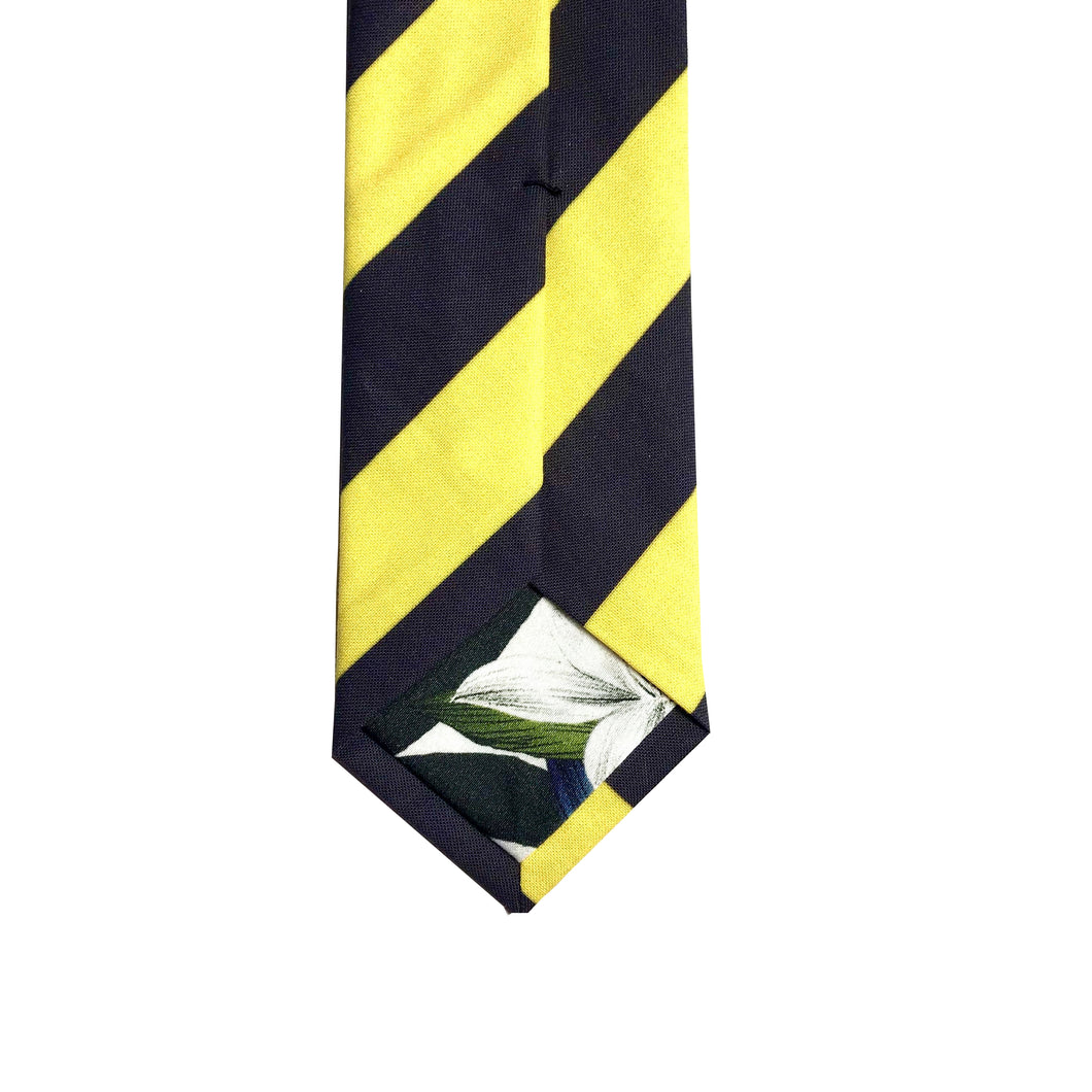 Refined Vanguards' ties are handmade in the USA. Each item will be unique due to its handcrafted nature. Every detail has been carefully executed resulting in high quality with a great deal of style. The Mills is an navy blue and gold necktie made from 100% cotton fabric. This tie is exquisitely finished with cream and multi-color floral tipping.