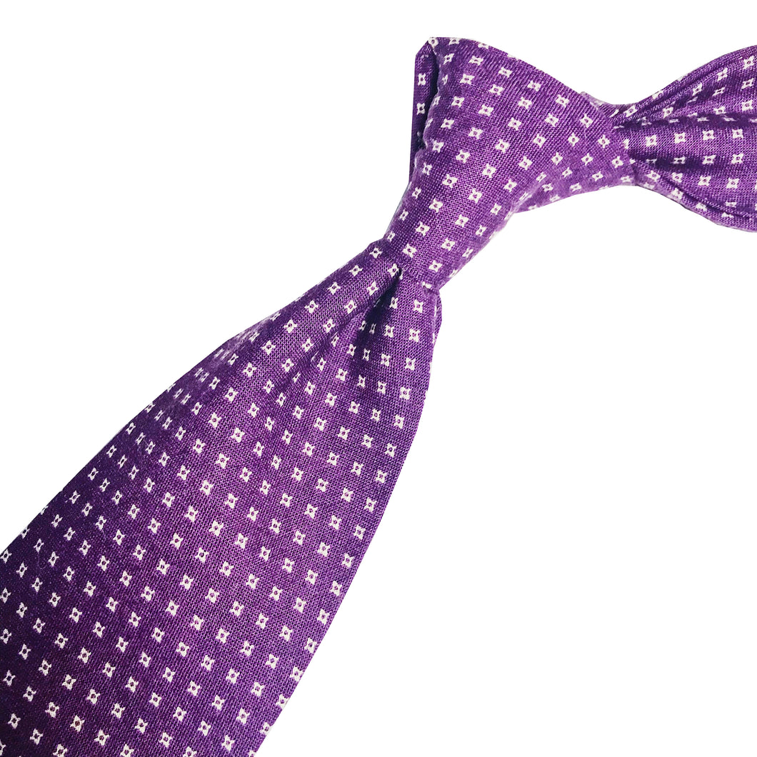 Refined Vanguards' ties are handmade in the USA. Each item will be unique due to its handcrafted nature. Every detail has been carefully executed resulting in high quality with a great deal of style. The Minnetonka is an purple micro-diamond pattern necktie made from 100% cotton fabric. This tie is exquisitely finished with light-purple tipping.