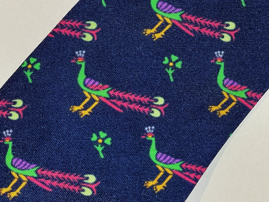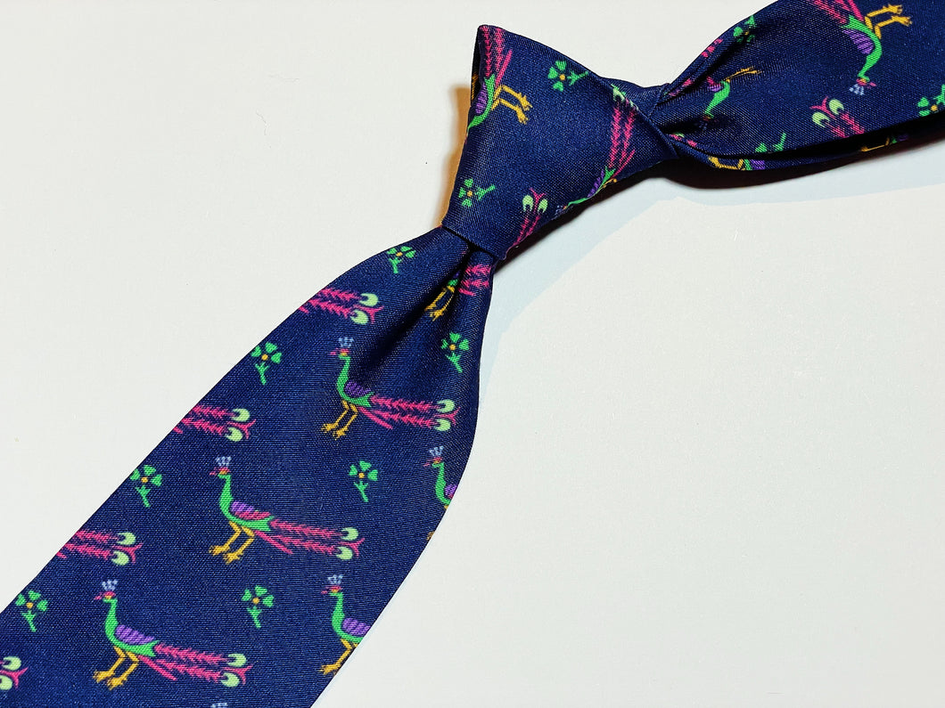 Refined Vanguards' ties are handmade in the USA. Each item will be unique due to its handcrafted nature. Every detail has been carefully executed resulting in a high quality with plenty of style. The Peacock Parade necktie features an exquisite peacock print, that comes in both slim and traditional sizes. Also, this tie is exquisitely finished with the same pattern tipping for uniformity. This tie will add a touch of flair to any outfit and perfect for any occasion.