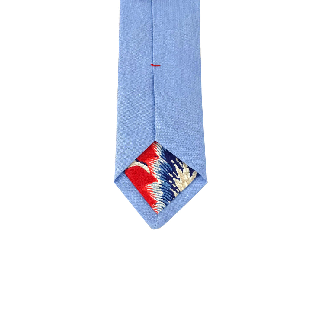 Refined Vanguards' ties are handmade in the USA. Each item will be unique due to its handcrafted nature. Every detail has been carefully executed resulting in high quality with a great deal of style. The Skydive is a light blue necktie made from 100% cotton fabric. This tie is exquisitely finished with a red floral pattern tipping.
