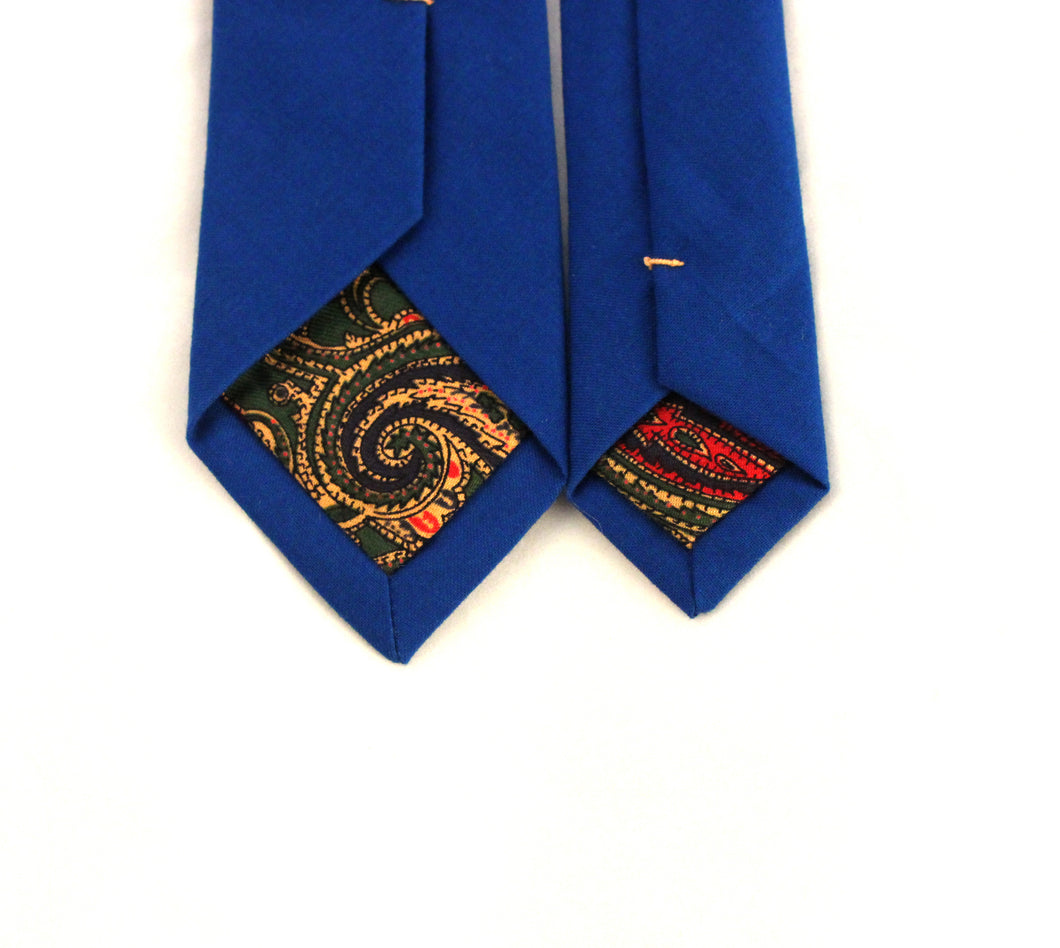 Refined Vanguards' ties are handmade in the USA. Each item will be unique due to its handcrafted nature. Every detail has been carefully executed resulting in high quality with a great deal of style. The Blue Ocean is a blue necktie made from 100% cotton fabric. This tie is exquisitely finished with a green paisley tipping.