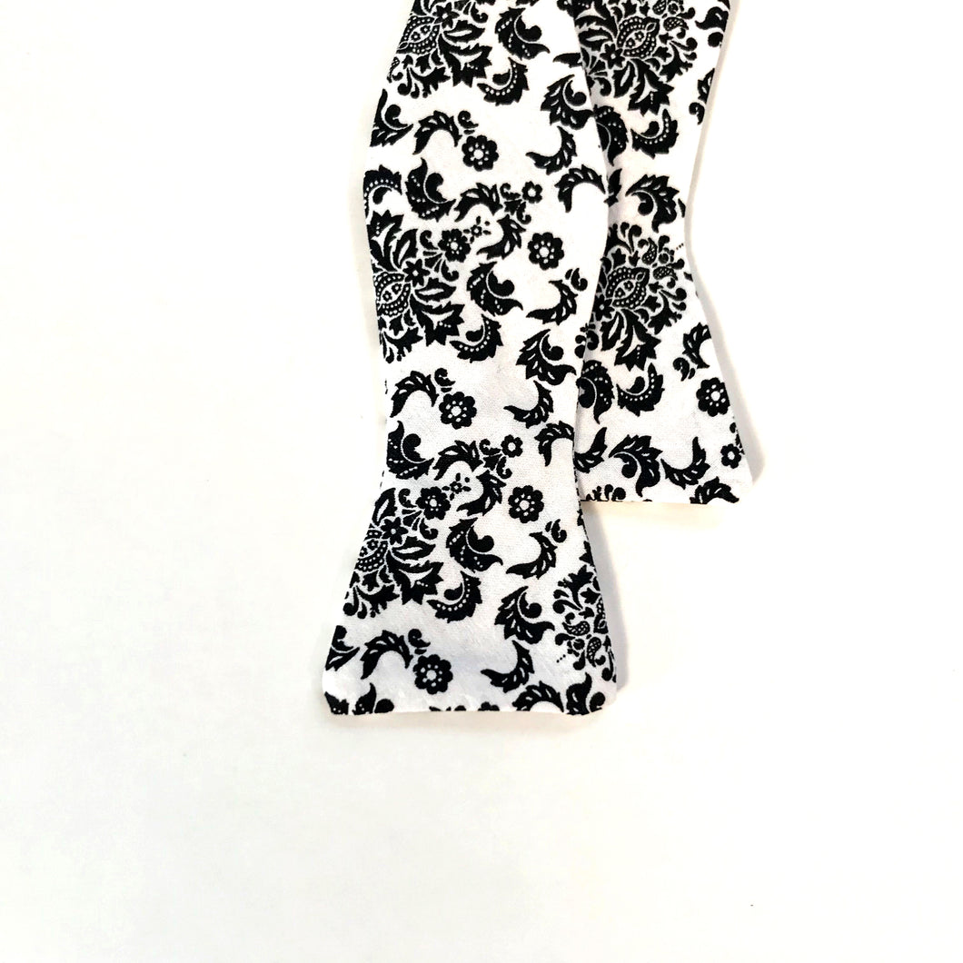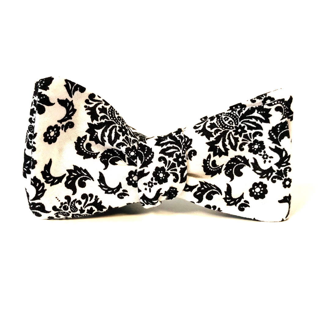 Refined Vanguards' ties are handmade in the USA. Each item will be unique due to its handcrafted nature. Every detail has been carefully executed resulting in a high quality with plenty of style. The Burrell bow tie is a white and black paisley pattern bow tie with a butterfly design made of cotton fabric. This tie is exquisitely finished with a sizing tape and clasp allowing easy wear.