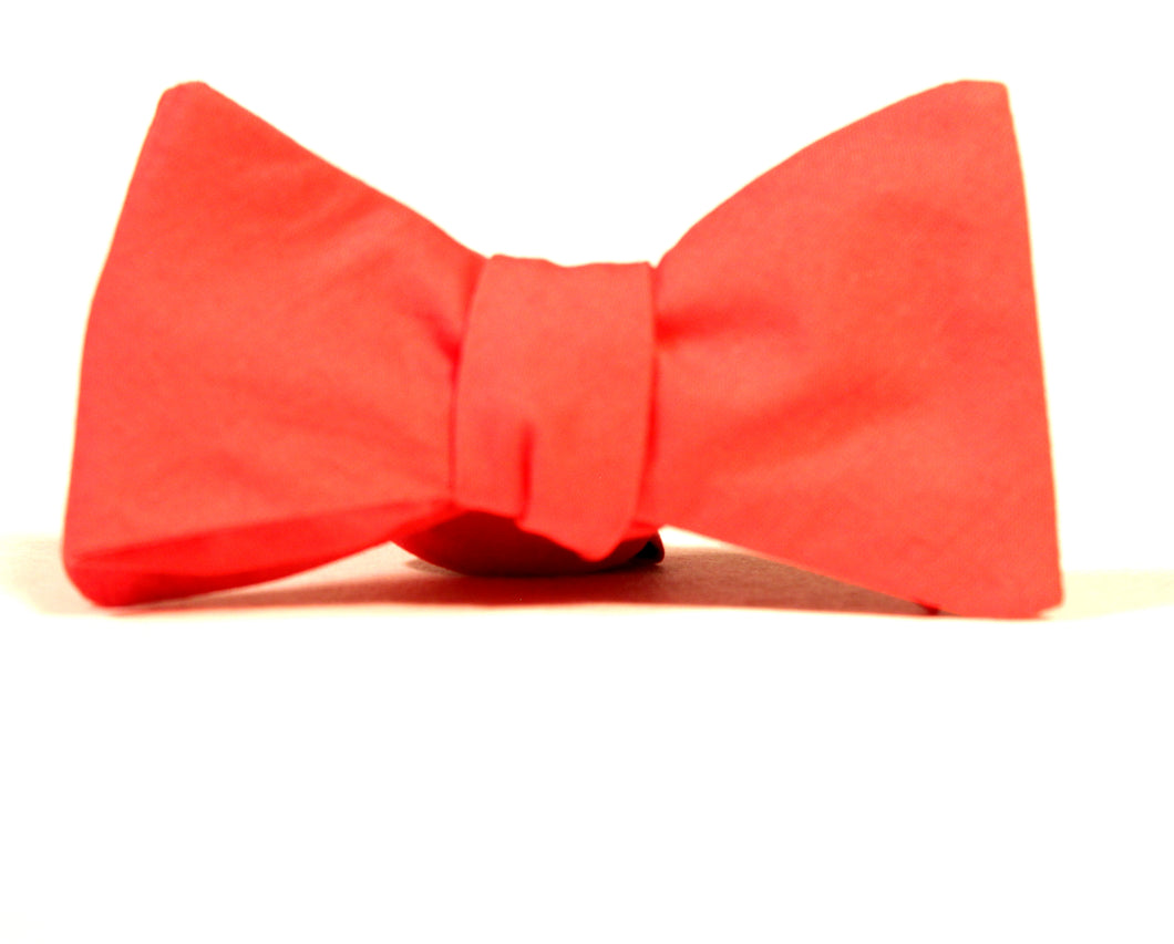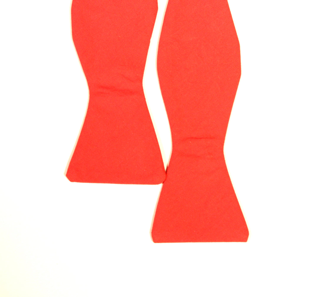 Refined Vanguards' ties are handmade in the USA. Each item will be unique due to its handcrafted nature. Every detail has been carefully executed resulting in high quality with a great deal of style. The Cherry Tomatoes is a solid red color bow tie with a bat-wing style design made of cotton fabric. This tie is exquisitely finished with a sizing tape and clasp allowing easy wear.