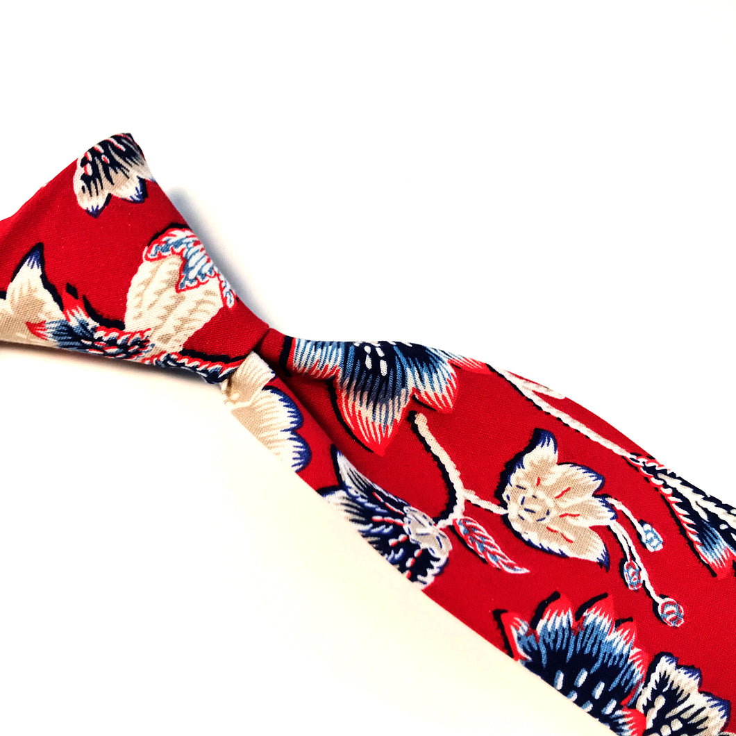 Refined Vanguards' ties are handmade in the USA. Each item will be unique due to its handcrafted nature. Every detail has been carefully executed resulting in a high quality with plenty of style. The Carter necktie features a red floral design made from 100% cotton fabric. This tie is exquisitely finished with a navy tipping.