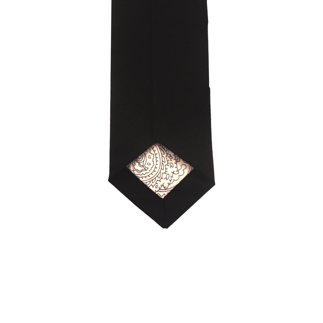 Refined Vanguards' ties are handmade in the USA. Each item will be unique due to its handcrafted nature. Every detail has been carefully executed resulting in a high quality with plenty of style. The Ison neck tie is a slim design made of black cotton fabric. This tie is exquisitely finished with a contrasting paisley patterned tipping.